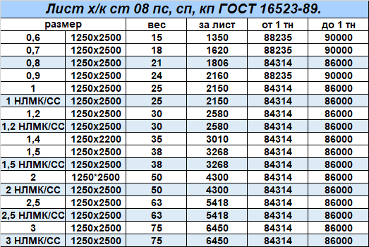 Сталь: 08пс, 08пс/кп, 08пс/сп, 08пс5, 08пс6, 08псГ, 30ХГСА, 60С2А, 65Г, ст10, ст20, ст35, ст40, ст45